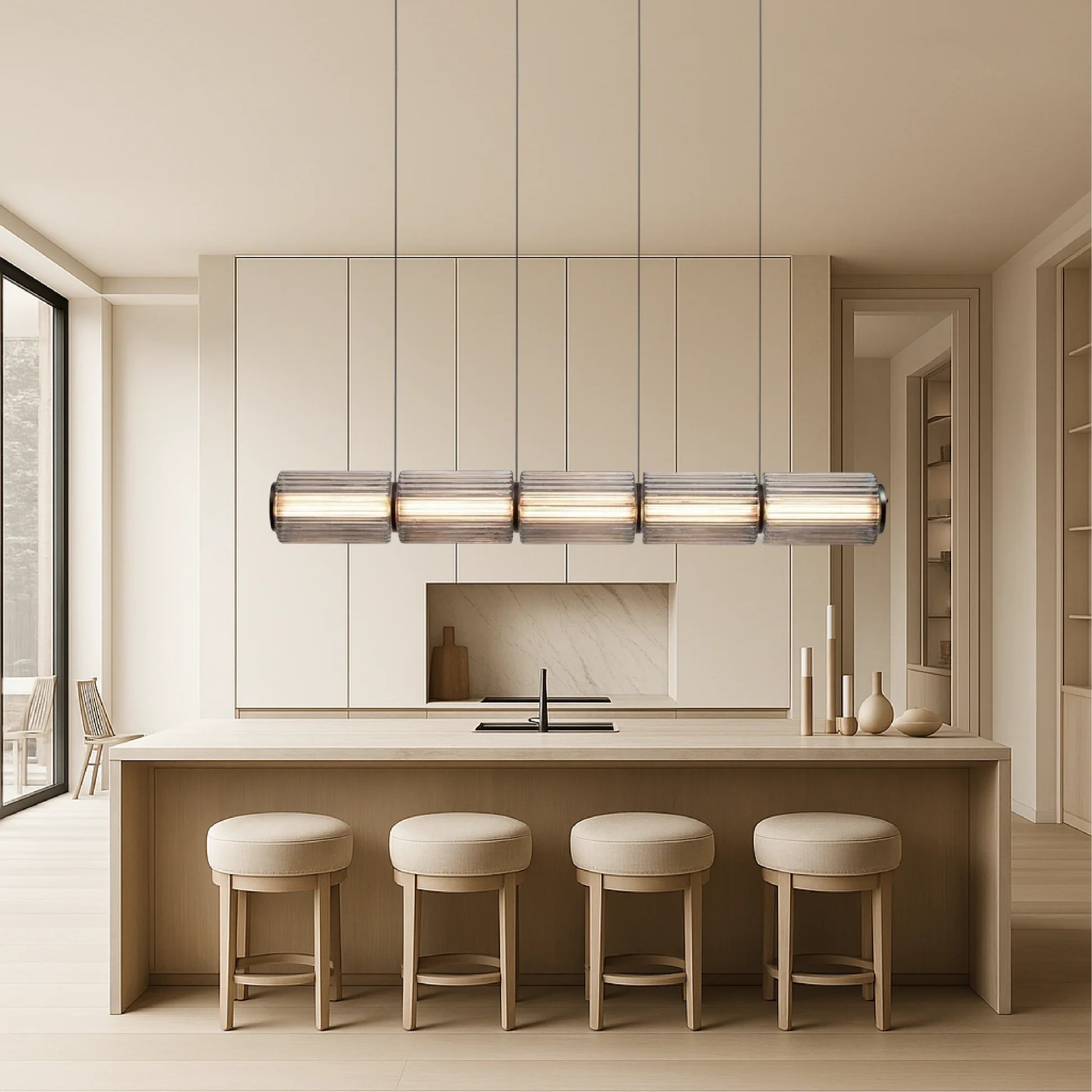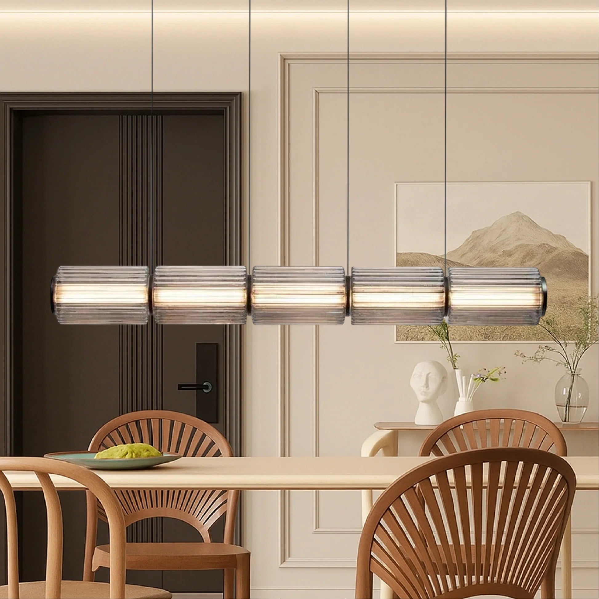 La lampada a sospensione Cylinder Glass è progettata per emettere una luce calda e piacevole che riempie la stanza senza essere fastidiosa per gli occhi. Che si tratti di una cena al tavolo della cucina o di un momento di relax in camera da letto, questa lampada crea l'atmosfera perfetta.