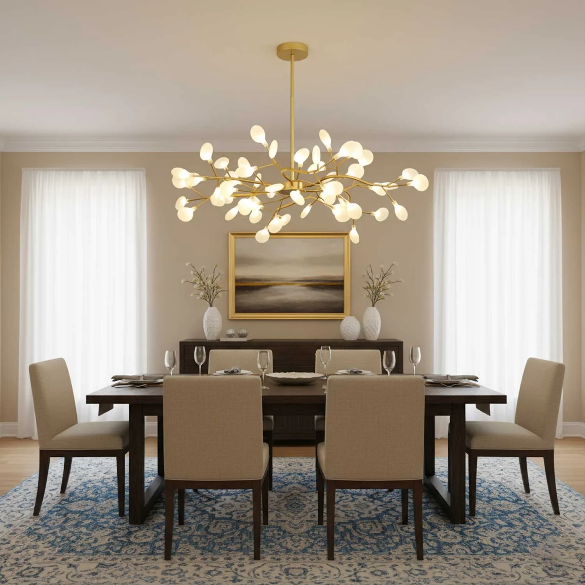 Il lampadario LED Firefly è progettato per emettere una luce calda e piacevole che riempie la stanza senza essere fastidiosa per gli occhi. Che si tratti di una cena al tavolo della cucina o di un momento di relax in camera da letto, questa lampada crea l'atmosfera perfetta.