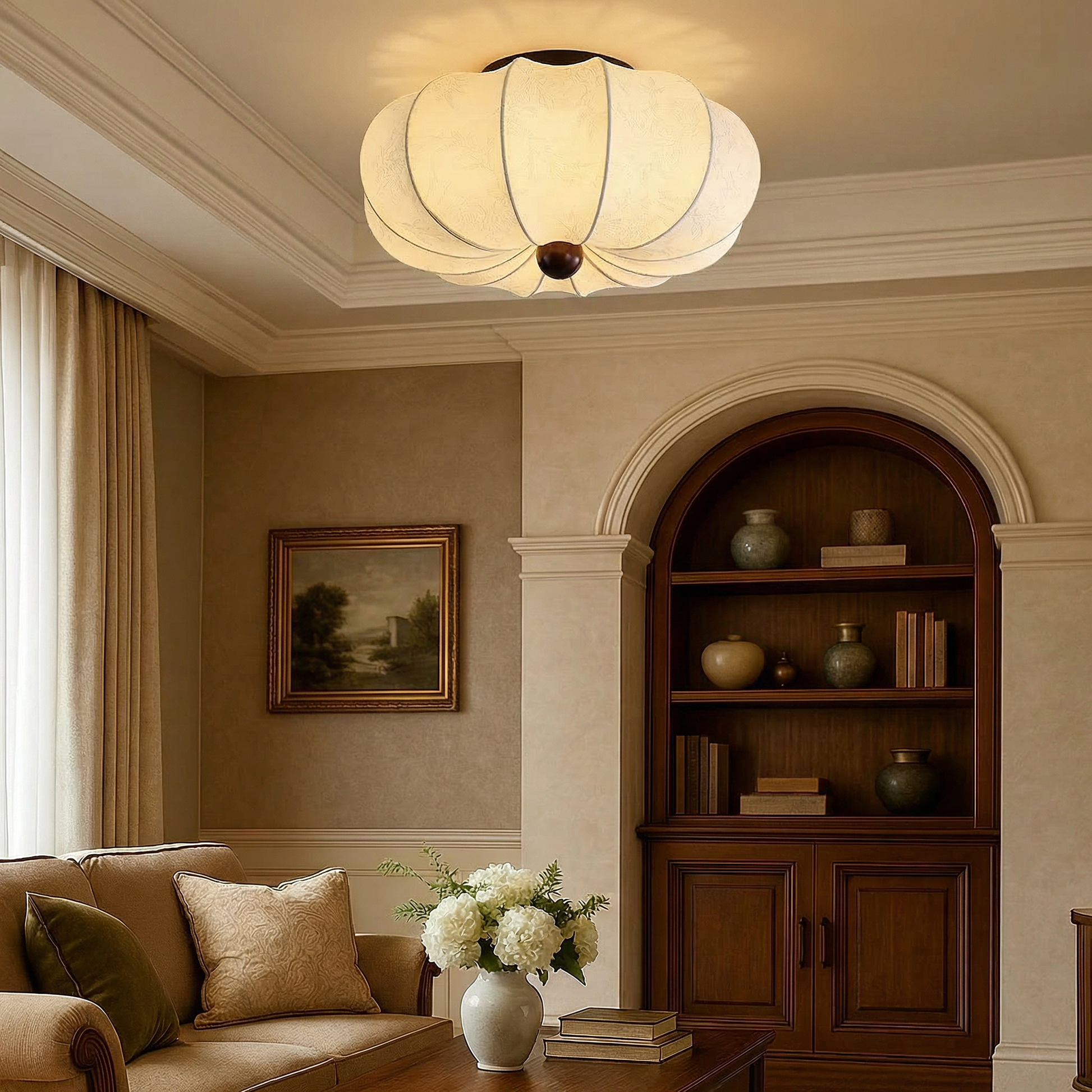 La plafoniera Medieval Silk è progettata per emettere una luce calda e piacevole che riempie la stanza senza essere fastidiosa per gli occhi. Sia che stiate cenando al tavolo della cucina o che vi stiate rilassando in camera da letto, questa lampada crea l'atmosfera perfetta.